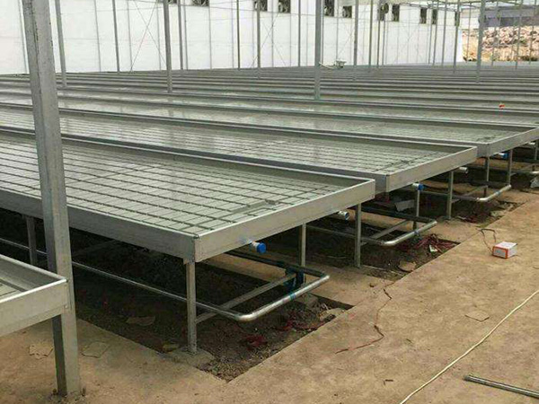 潮汐式灌溉移動(dòng)苗床是一種針對(duì)盆栽植物營養(yǎng)液栽培或容器育苗和無土栽培所設(shè)計(jì)的底部給水的先進(jìn)的灌溉方式。該方式利用落差原理,實(shí)現(xiàn)定時(shí)給水與施肥。國內(nèi)外大量的試驗(yàn)研究表明,采用潮汐灌溉方式的作物,其生長量明顯優(yōu)于人工澆灌方式,不但能降低壞疽葉和皺折葉的發(fā)生,還可減少用水量達(dá)33%,提高水分利用效率達(dá)40%。由于潮汐灌溉沒有淋浴作用,還能減少氮素使用量達(dá)30%~35%,大大提高氮素的利用效率。